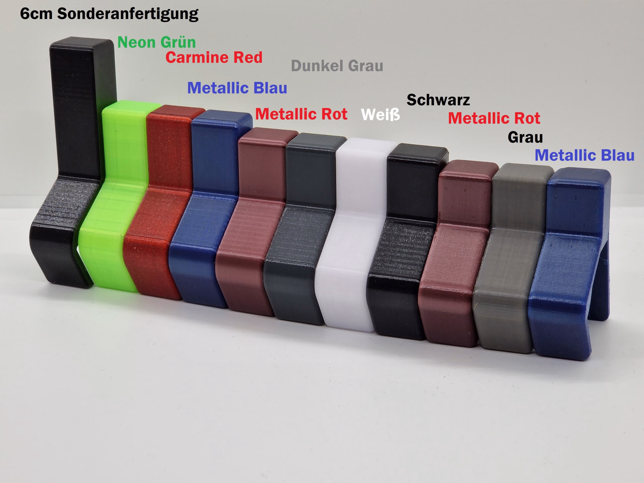 | Hauptfarbe | Schwarz, Dunkel Grau, Grau, Weiß, Gelb, Rot, Metallic Rot, Metallic Grün, Metallic Blau |